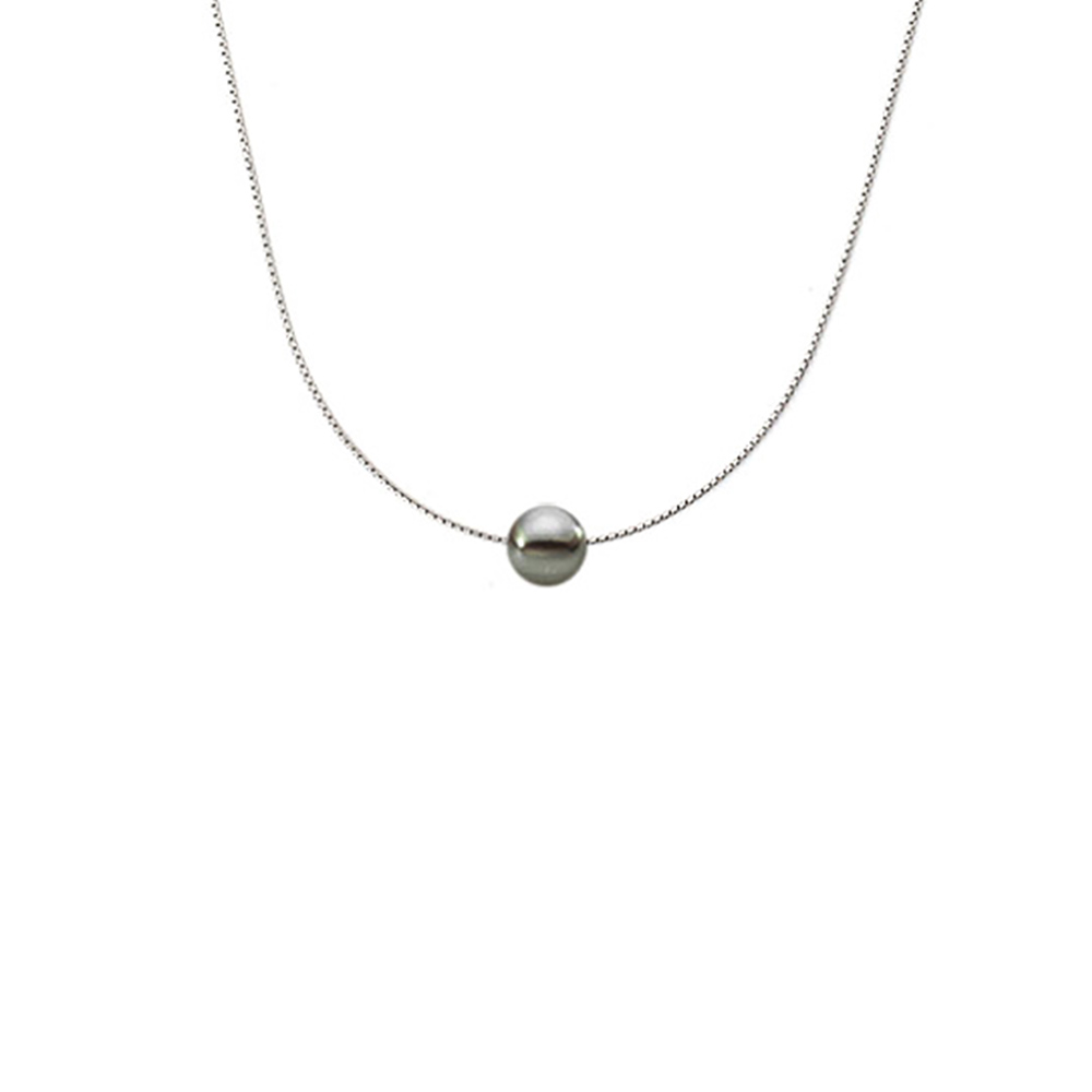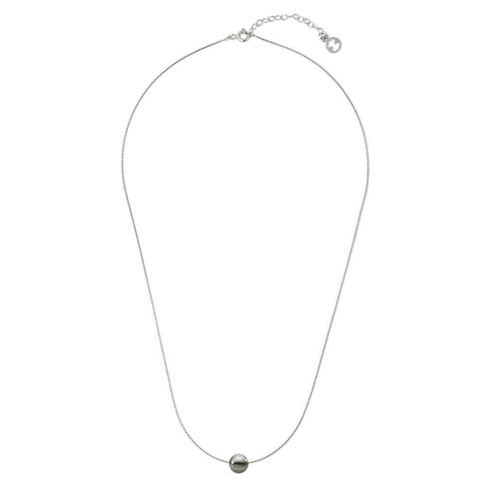Κολιέ με μαύρο μαργαριτάρι και ασημένια αλυσίδα 925 - M121225B