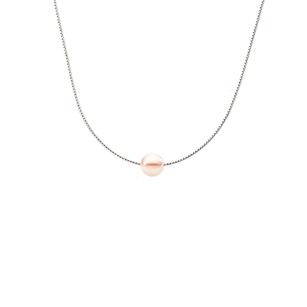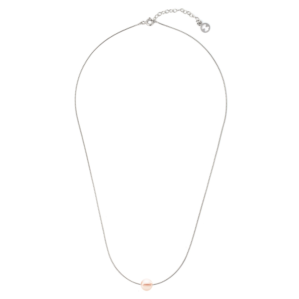 Κολιέ με σομόν μαργαριτάρι και ασημένια αλυσίδα 925 - M121225S