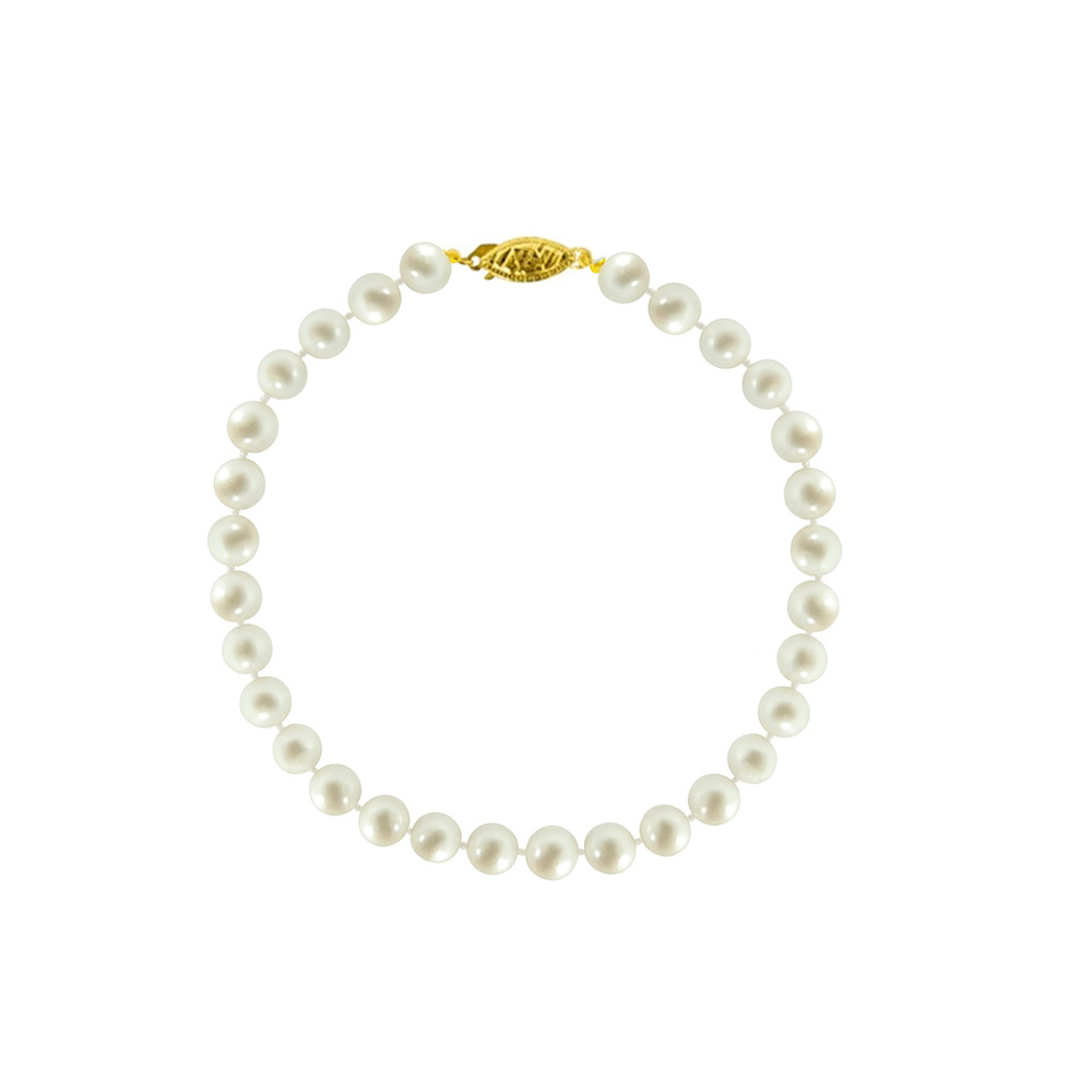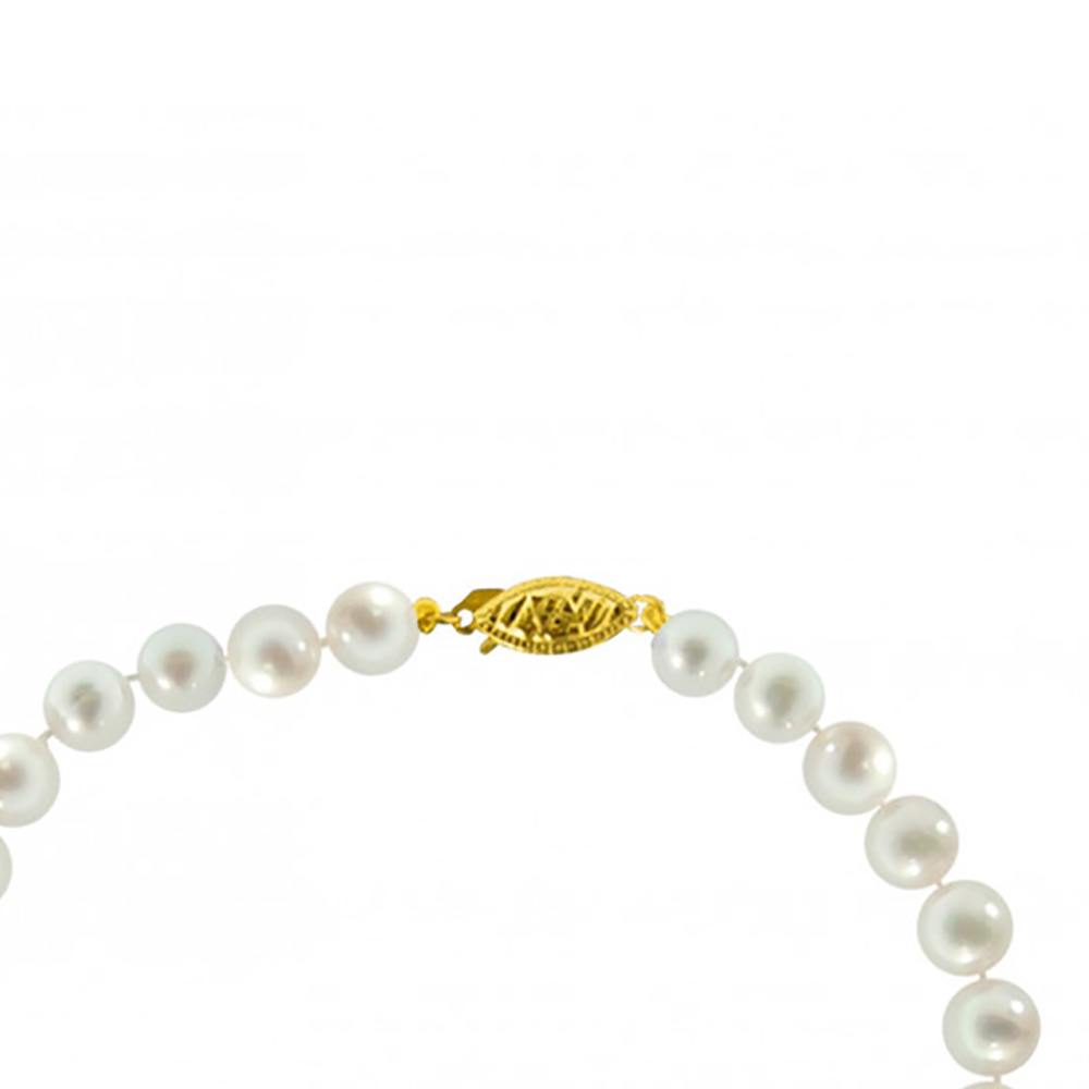 • Ένα υπέροχο βραχιόλι με λευκά στρογγυλοποιημένα μαργαριτάρια Fresh Water Pearl, άριστης ποιότητας διαμέτρου 4,5 - 5 χιλιοστών.