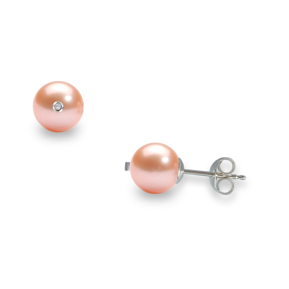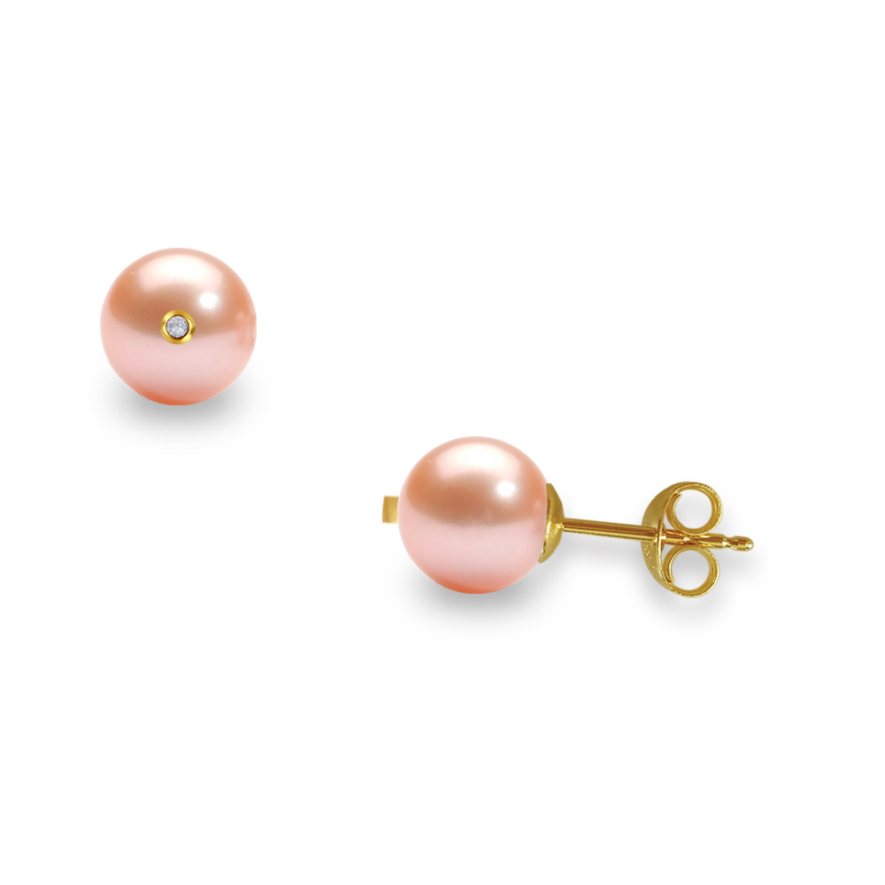 Σκουλαρίκια με σομόν μαργαριτάρια σε χρυσή βάση Κ14 και διαμάντια  - G317599WS