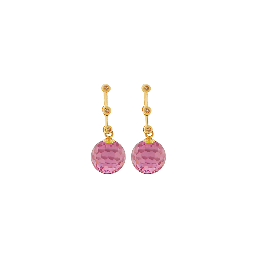 • Ένα υπέροχο σκουλαρίκι από 18 καράτια χρυσού ή λευκόχρυσου με ημιπολύτιμους λίθους Pink Quartz διαμέτρου 10,0 χιλιοστών.