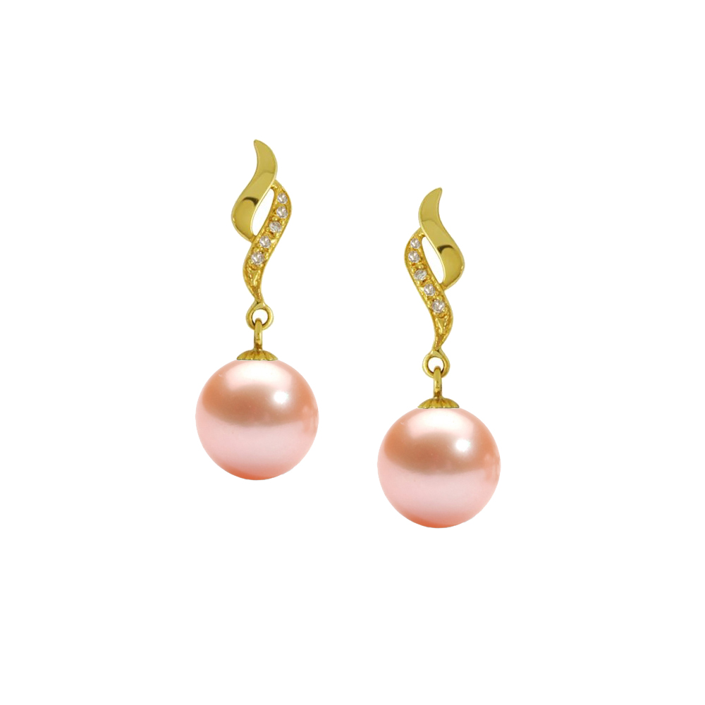 • Ένα φανταστικό ζευγάρι κρεμαστά σκουλαρίκια με εντυπωσιακά σομόν μαργαριτάρια QTV Akoya Pearl, άριστης ποιότητας σε σχήμα Round (στρογγυλά), διαμέτρου 7,5 - 8,0 χιλιοστών.