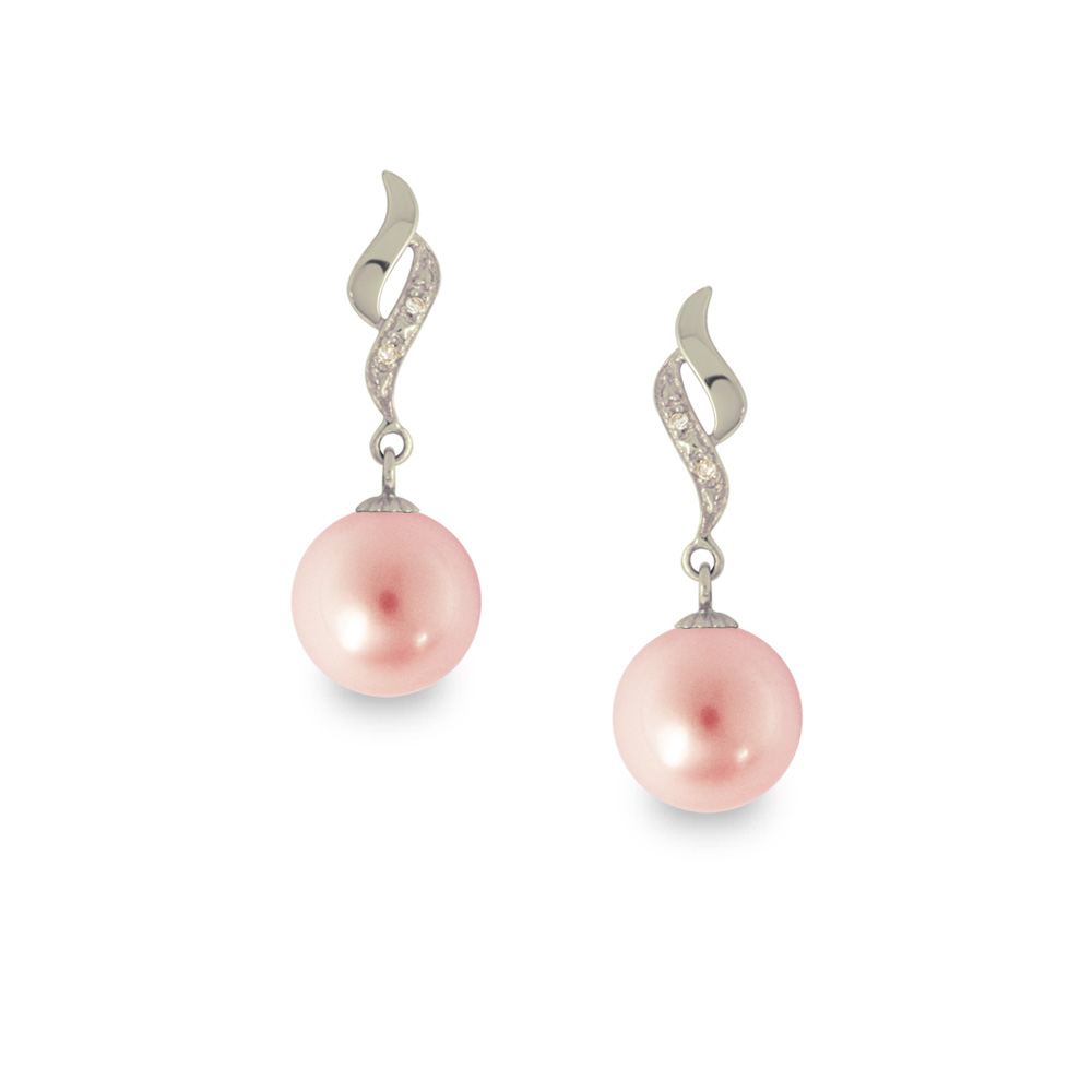 Σκουλαρίκια με σομόν μαργαριτάρια και διαμάντια σε χρυσή βάση Κ18 - G318829S