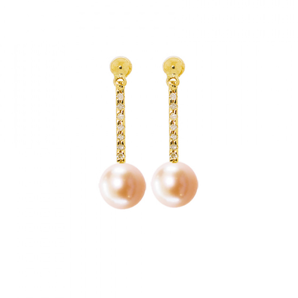 Σκουλαρίκια Κ18 χρυσά με σομόν μαργαριτάρια και διαμάντια - G318831S