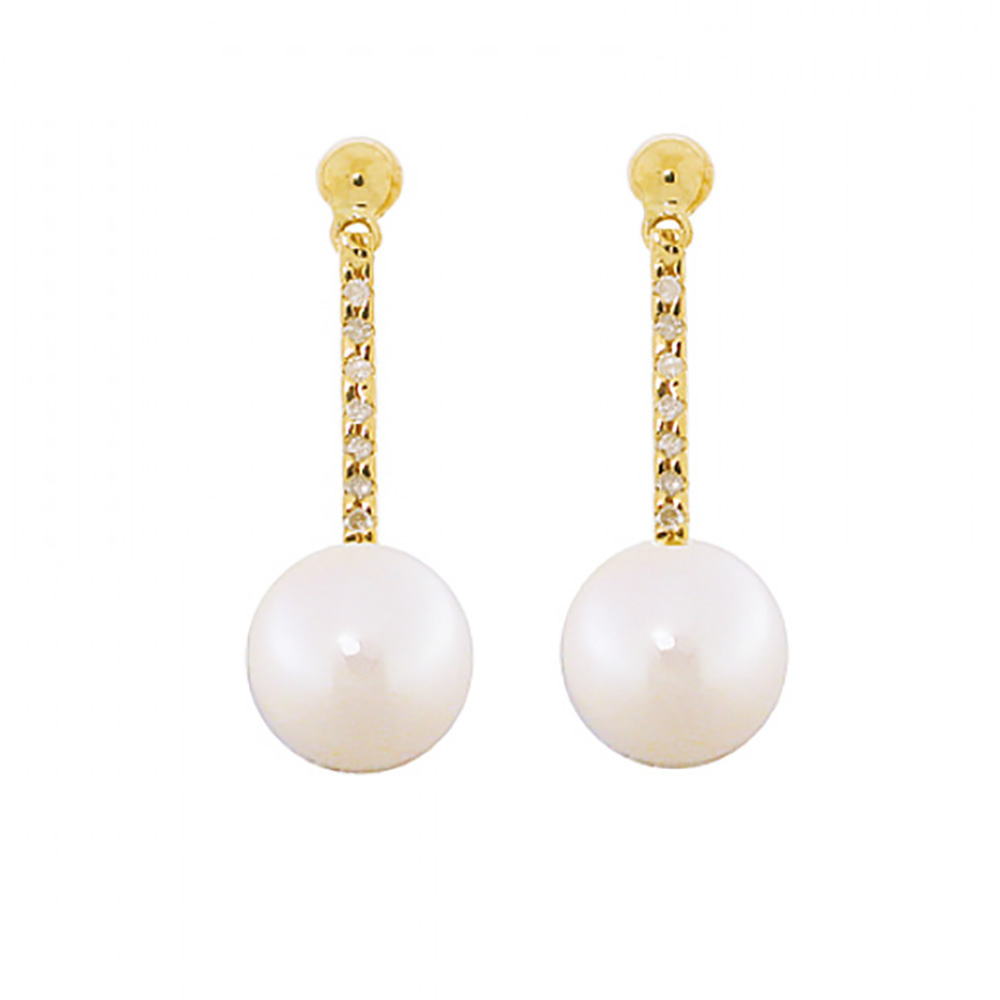 Σκουλαρίκια με λευκά μαργαριτάρια και διαμάντια σε χρυσή βάση Κ18 - G318845