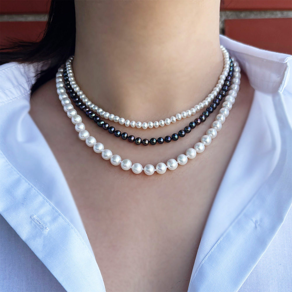 • Ένα υπέροχο κολιέ με 3 σειρές μαργαριτάρια Fresh Water Pearl διαμέτρου 4-8 χιλιοστών.