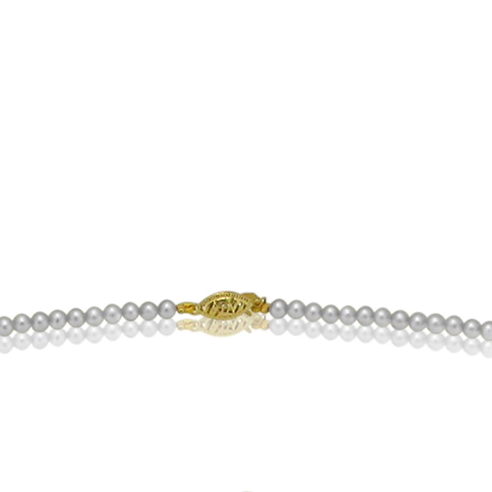 • Ένα υπέροχο κολιέ από γκρι μαργαριτάρια γλυκού νερού Fresh Water Pearl διαμέτρου 4 χιλιοστών.