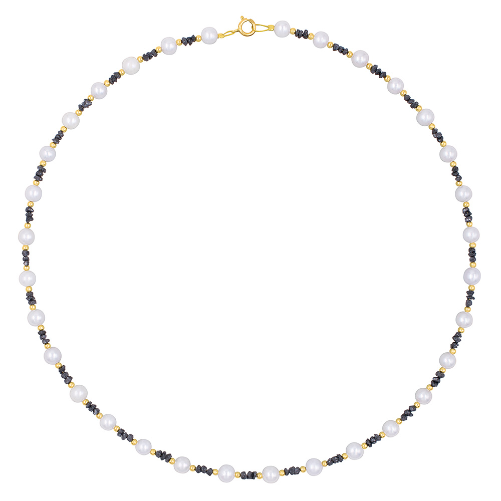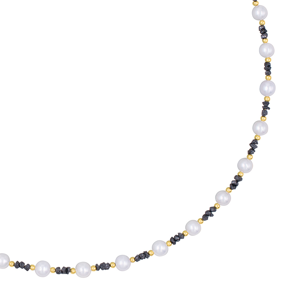 Νέο Κολιέ με Κ14 χρυσά στοιχεία, λευκά μαργαριτάρια και ρινίσματα μαύρων διαμαντιών - F1252280