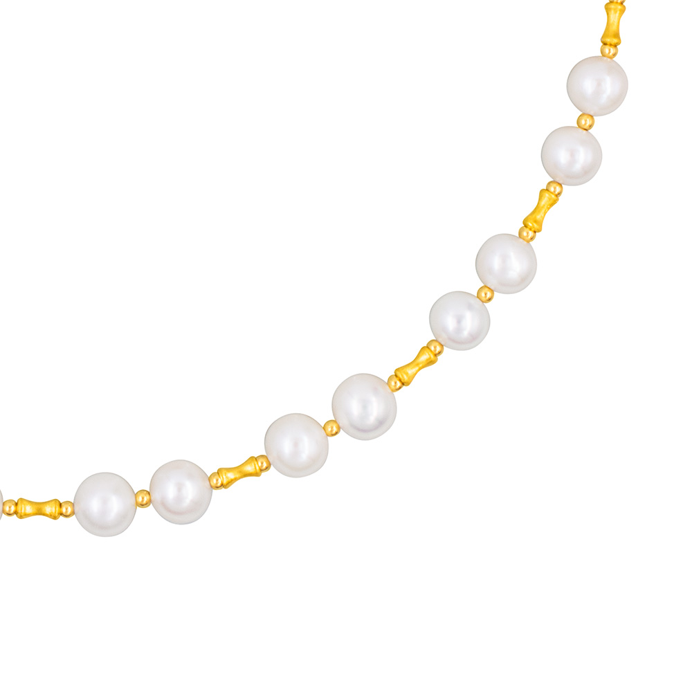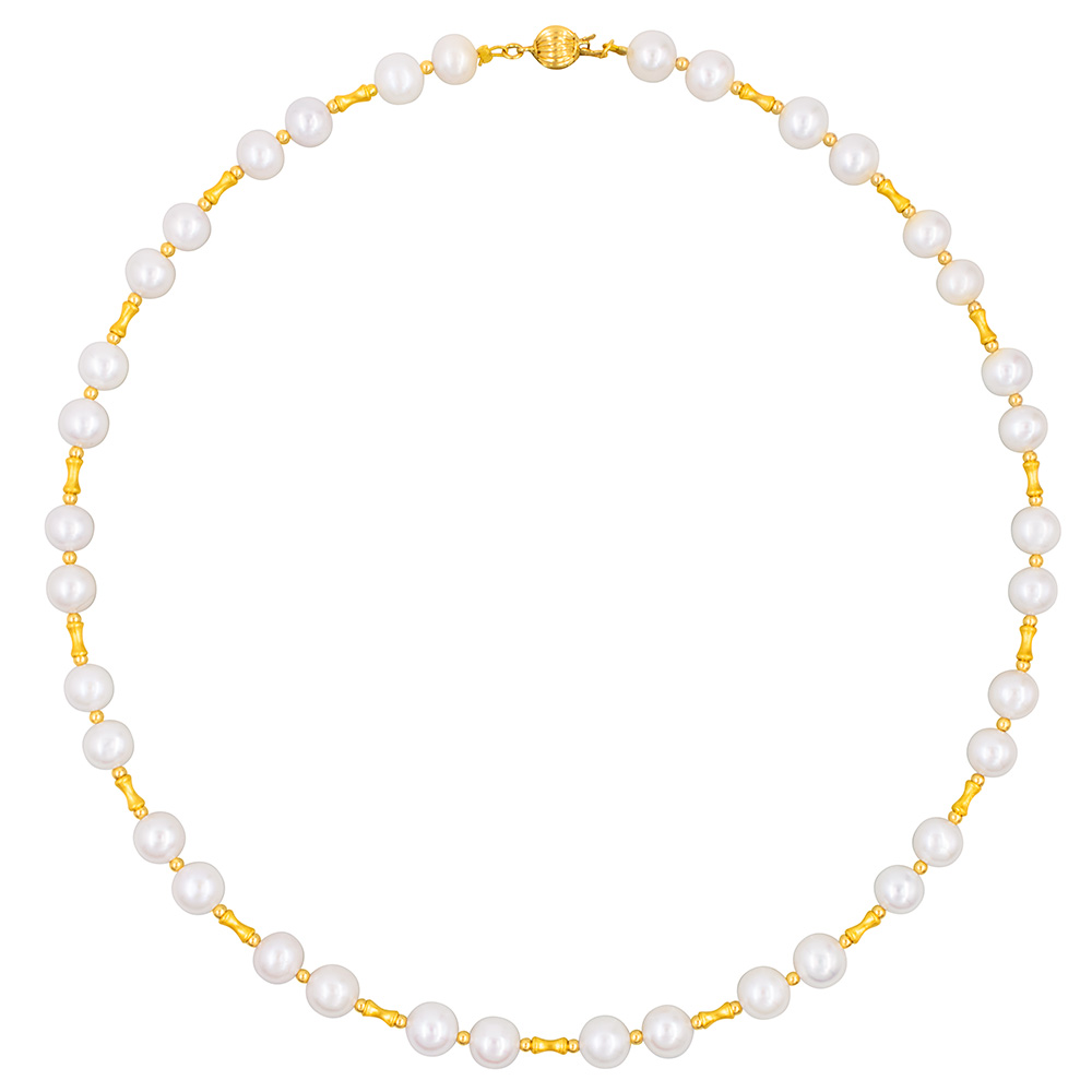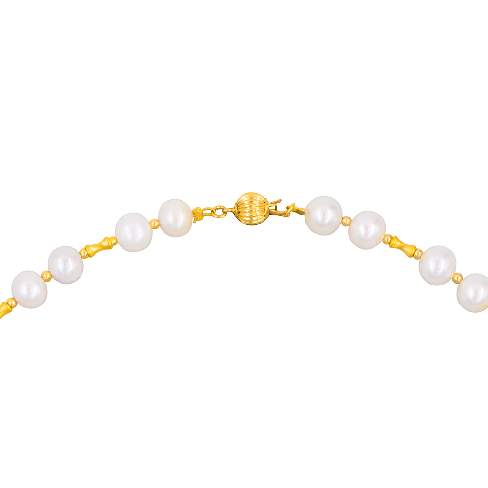 Ένα κολιέ που συνδυάζει την κλασική ομορφιά των μαργαριταριών με την λάμψη του χρυσού.