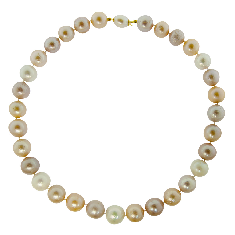 • Ένα υπέροχο κολιέ απο εντυπωσιακά φυσικού χρωματισμού πολύχρωμα μαργαριτάρια Fresh Water Pearl διαμέτρου από 13 έως 14,5 χιλιοστά, άριστης ποιότητας.