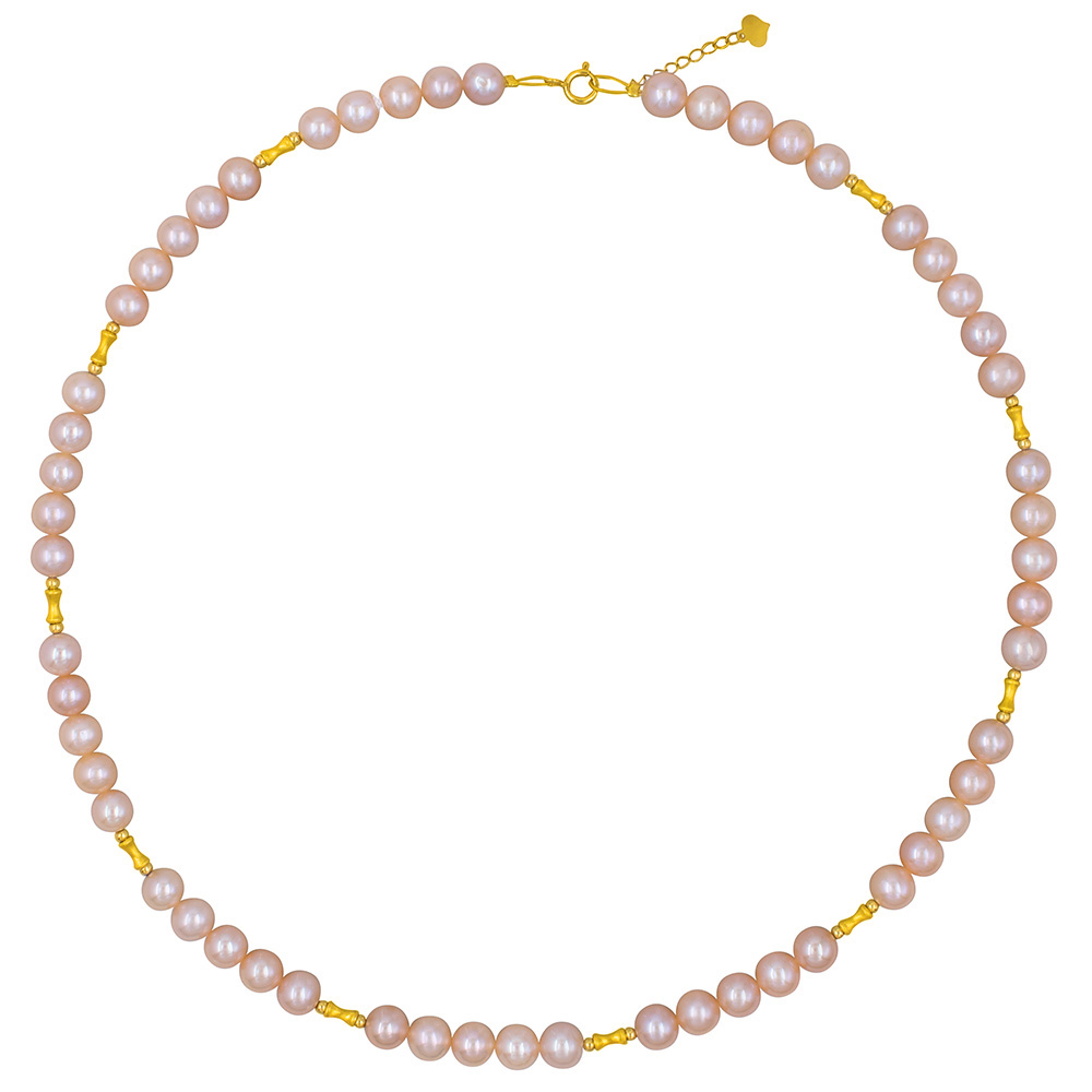 Κολιέ με Κ18 χρυσά στοιχεία και σομόν μαργαριτάρια - F126241
