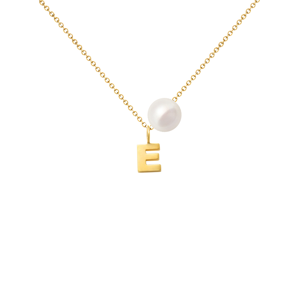 Κολιέ με Κ14 χρυσή αλυσίδα, μενταγιόν μονόγραμμα και μαργαριτάρι - F124601W