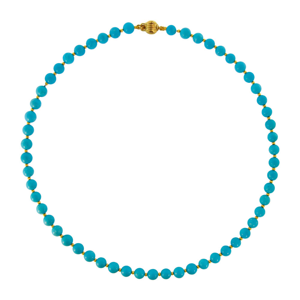• Ένα υπέροχο κολιέ με ημιπολύτιμο λίθο Turquiose διαμέτρου χιλιοστών.