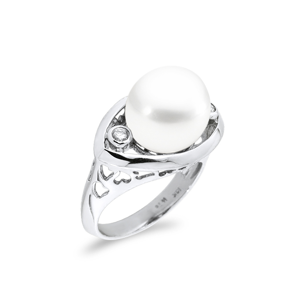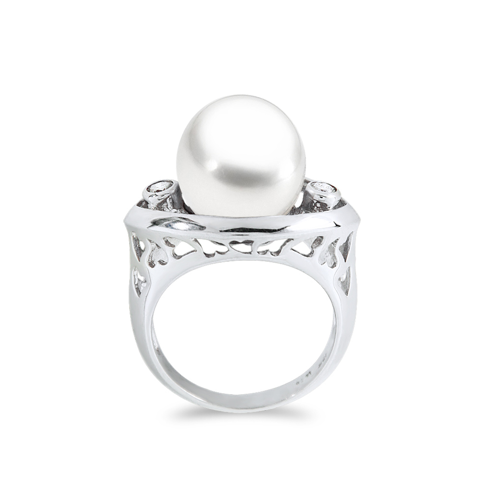 • Ένα υπέροχο δαχτυλίδι από 18 καράτια λευκόχρυσου με λευκό μαργαριτάρι South Sea Pearl, άριστης ποιότητας διαμέτρου 12.1 χιλιοστών και 2 διαμάντια 0.11 καρατίων.