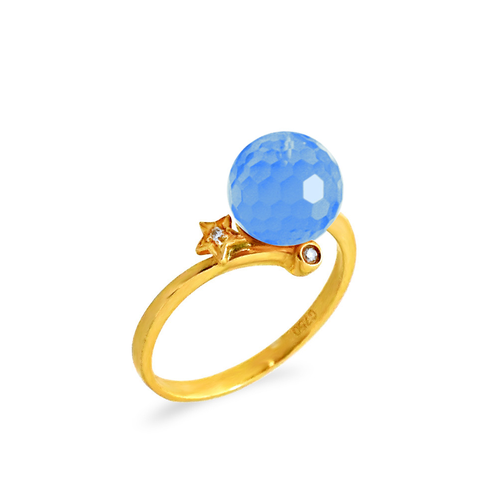 • Ένα υπέροχο δαχτυλίδι με Blue Topaz CZ διαμέτρου 10 χιλιοστών και 3 διαμάντια 0,03 καρατίων.