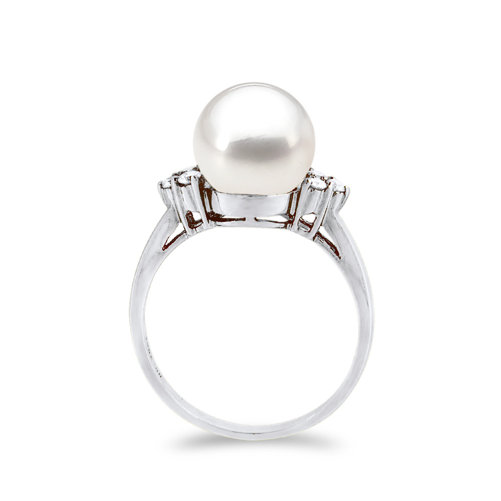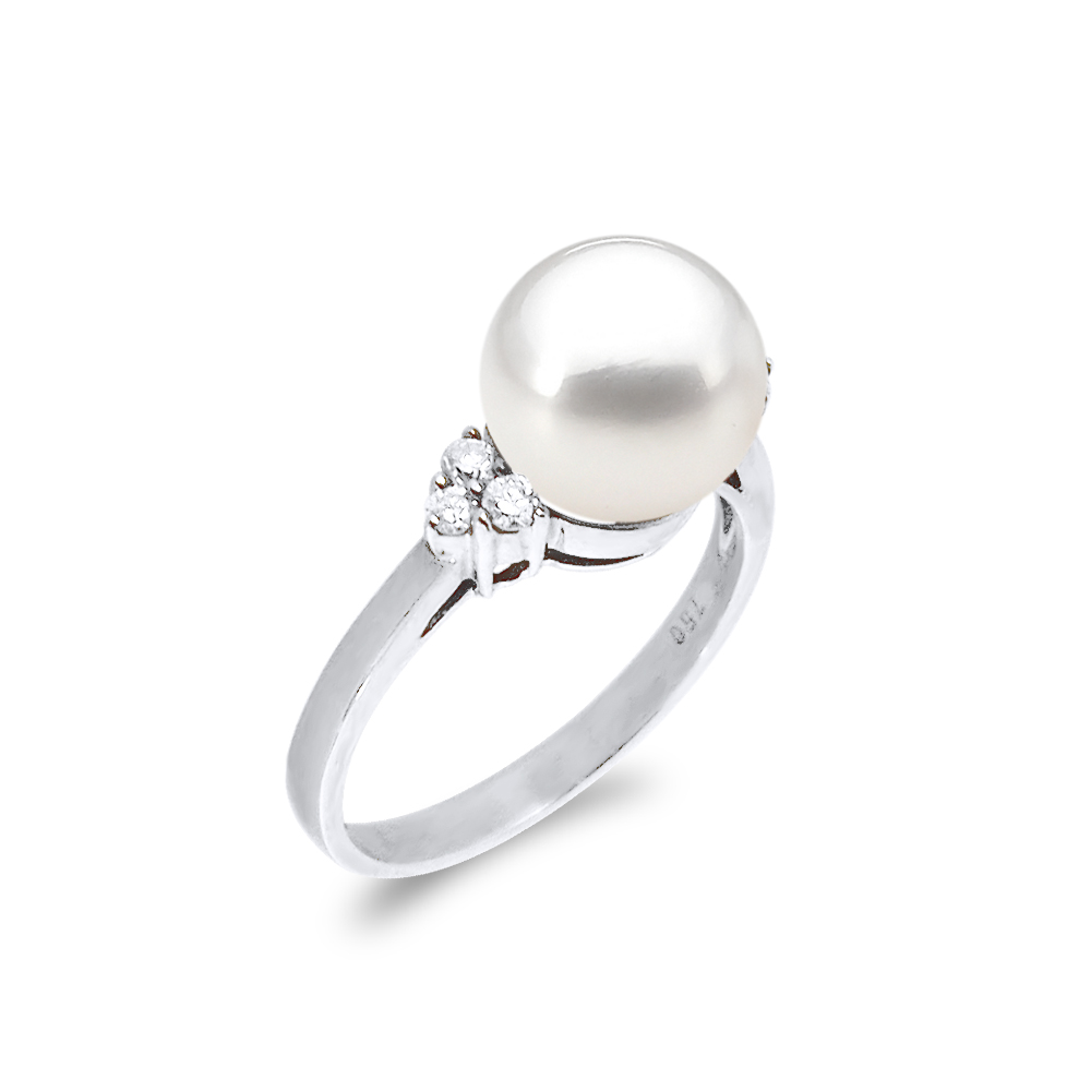 • Ένα φανταστικό δαχτυλίδι από 18 καράτια λευκόχρυσου, με λευκό μαργαριτάρι QTV Akoya Pearl, άριστης ποιότητας διαμέτρου 10,5 χιλιοστών και 6 διαμάντια 0.20 καρατίων.