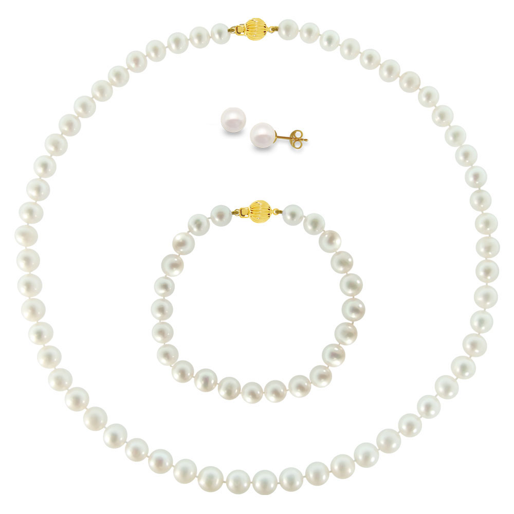 Σετ κολιέ, σκουλαρίκια και βραχιόλι σε Κ14 χρυσό με λευκά μαργαριτάρια - M990005