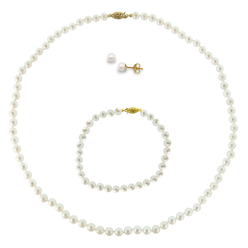 Σετ κολιέ, σκουλαρίκια και βραχιόλι σε Κ14 χρυσό με λευκά μαργαριτάρια - M990007