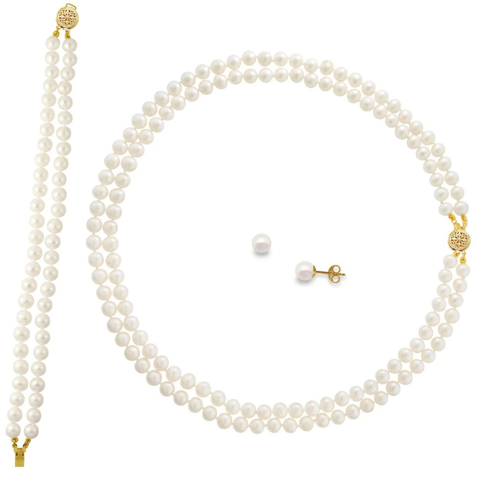 Σετ κολιέ, σκουλαρίκια και βραχιόλι Κ14 χρυσό με λευκά μαργαριτάρια - M121496