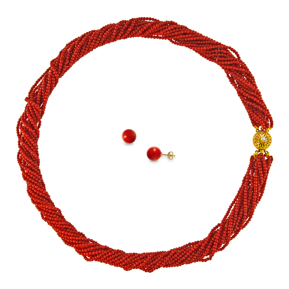 Σετ κολιέ και σκουλαρίκια σε Κ14 χρυσό με κοράλλι - M990027