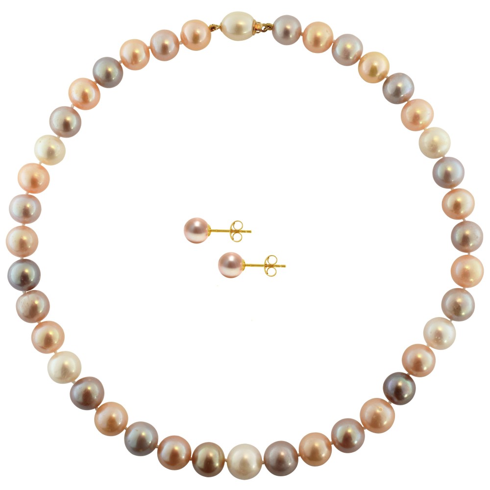 Σετ κολιέ και σκουλαρίκια σε Κ18 χρυσό με πολύχρωμα μαργαριτάρια - M990016