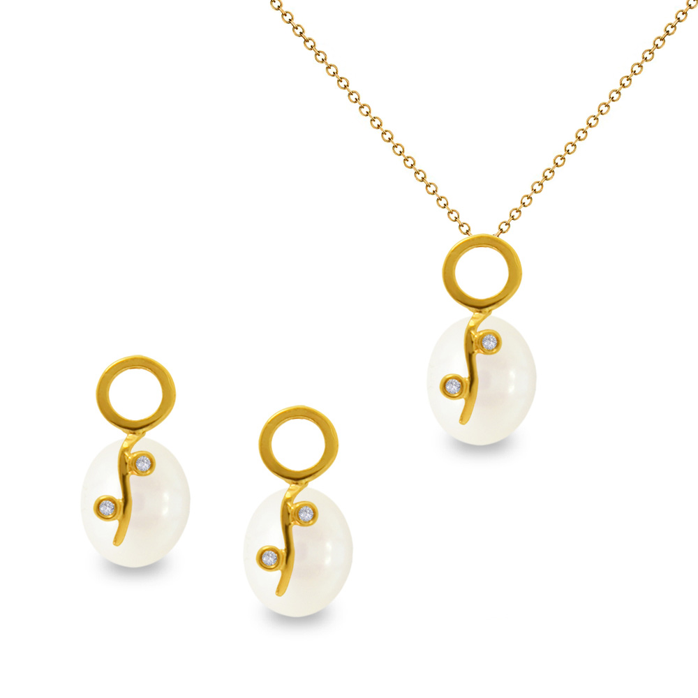 Σετ Κ18 χρυσό μενταγιόν και σκουλαρίκια με λευκά μαργαριτάρια και διαμάντια - M990001