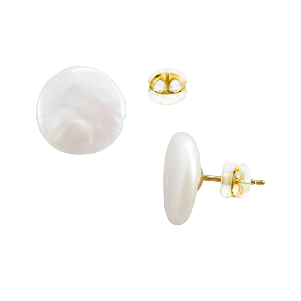 • Ένα υπέροχο ζευγάρι σκουλαρίκια με λευκά μαργαριτάρια Keshi Fresh Water Pearl, άριστης ποιότητας σε σχήμα Baroqueδιαμέτρου 13-14 χιλιοστών και χρυσή βάση 14 καρατίων.