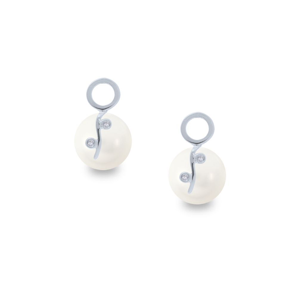 • Ένα υπέροχο ζευγάρι σκουλαρίκια με λευκά Shell Pearl διαμέτρου 12 χιλιοστών και λευκόχρυσες βάσεις 18 καρατίων.