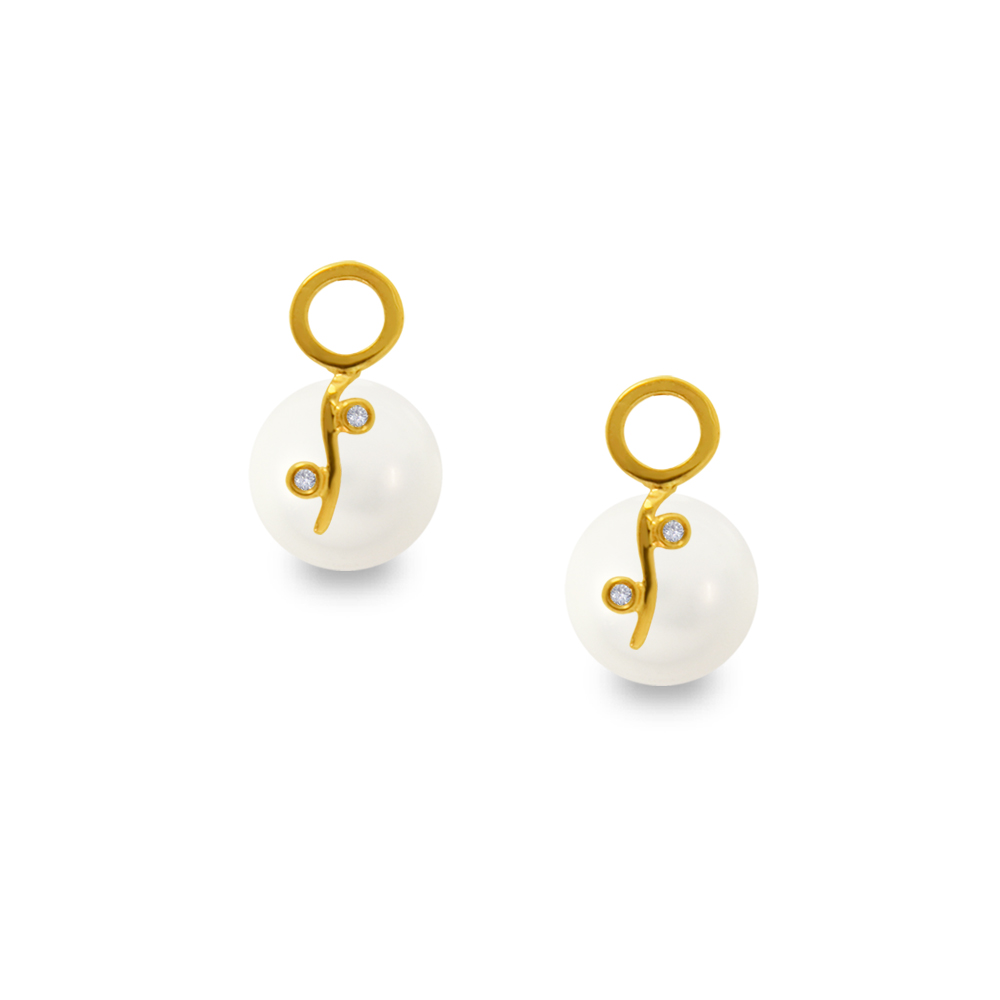 • Ένα υπέροχο ζευγάρι σκουλαρίκια με λευκά Shell Pearl διαμέτρου 12,0 χιλιοστών και χρυσή βάση 18 καρατίων.