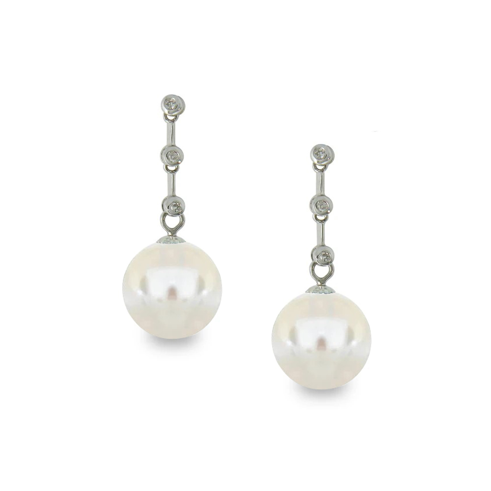 Σκουλαρίκια Κ18 λευκόχρυσα με λευκά Shell Pearl και διαμάντια - W319984