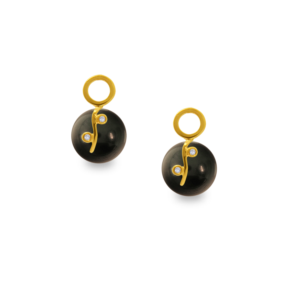• Ένα υπέροχο ζευγάρι σκουλαρίκια με μαύρα Shell Pearl διαμέτρου 12,0 χιλιοστών και χρυσή βάση 18 καρατίων.