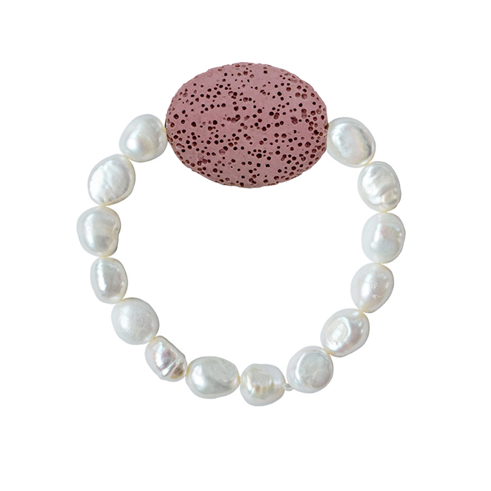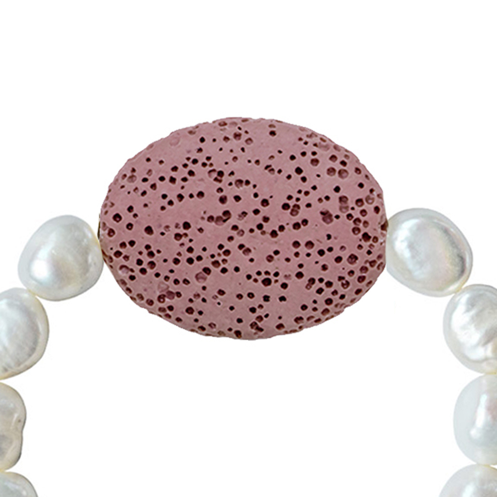 Βραχιόλι με λευκά μαργαριτάρια 8x10mm και Lava - M123475LR