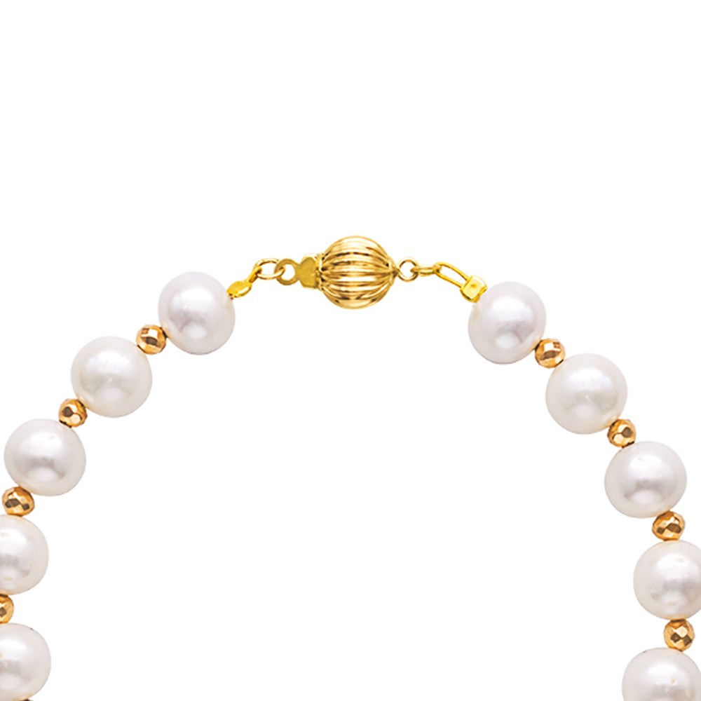 -35% Βραχιόλι με Κ14 χρυσό κούμπωμα, λευκά μαργαριτάρια και αιματίτη - F124507