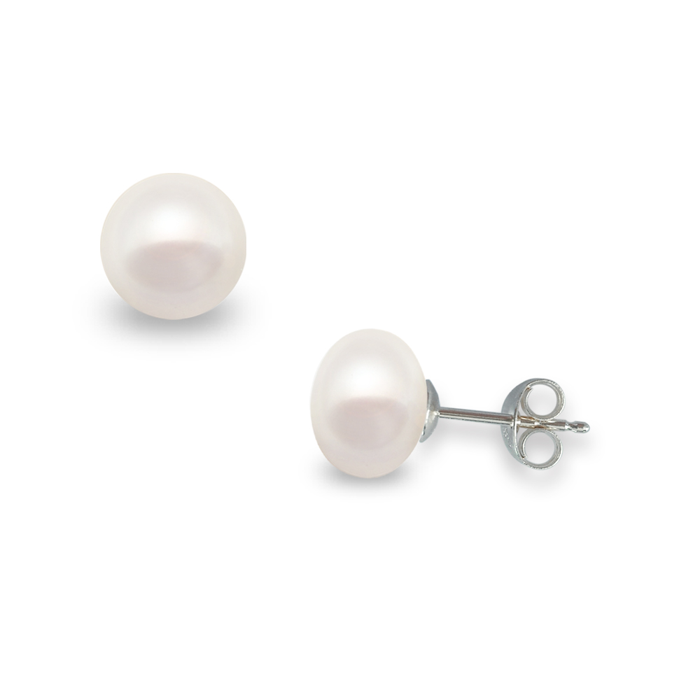 • Ένα υπέροχο ζευγάρι σκουλαρίκια με λευκά μαργαριτάρια Fresh Water Pearl άριστης ποιότητας σε σχήμα Button (κουμπί), διαμέτρου 9 - 9,5 χιλιοστών.