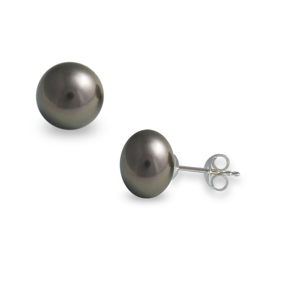 • Ένα υπέροχο ζευγάρι σκουλαρίκια με μαύρα μαργαριτάρια Fresh Water Pearl, άριστης ποιότητας σε σχήμα Button (κουμπί), διαμέτρου 10,5 - 11 χιλιοστών.