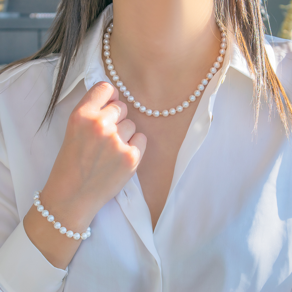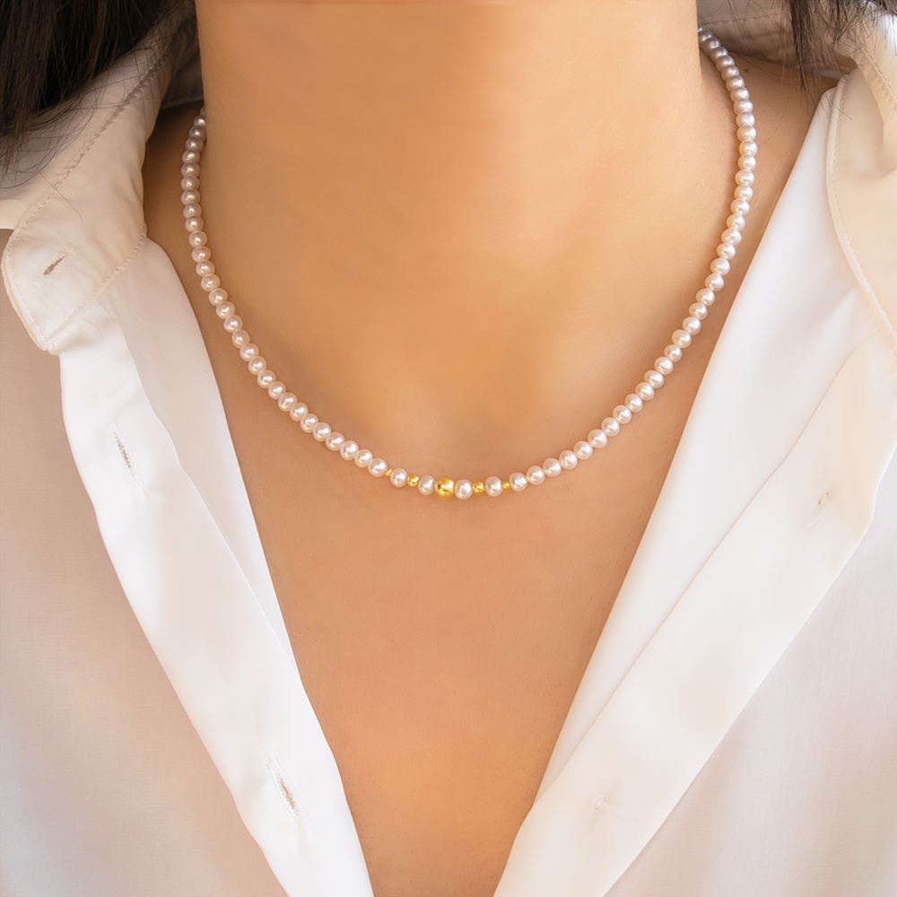 Ένα κολιέ με μαργαριτάρια 4, 5 ή 6 χιλιοστών είναι μία τέλεια επιλογή για νεαρότερες ηλικίες αλλά και για πιο καθημερινό look, ενώ μπορείς να βρεις πολλά σχέδια όπου έχουμε συνδυάσει τα μαργαριτάρια με χρυσά στοιχεία. Κάποια από τα πιο αγαπημένα σχέδια των πελατών μας είναι τα: F042120, F124113, F110291 και S124011.