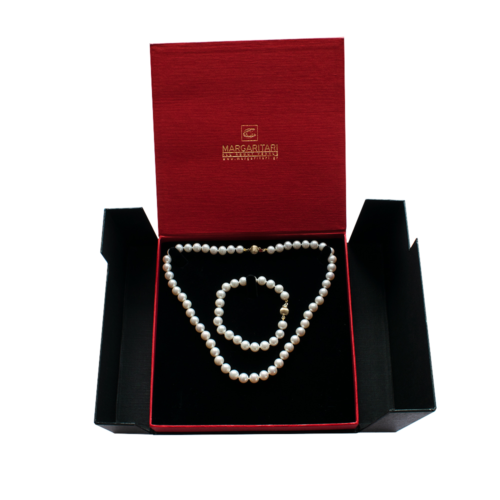 Καθώς το μαργαριτάρι είναι φυσικό, οργανικό υλικό, ακόμα και στην ίδια ποιότητα και μέγεθος, υπάρχουν διαφορές όσον αφορά στο χρώμα, στην λάμψη και στο σχήμα. Αυτό σημαίνει πως κάθε σειρά μαργαριταριών διαφέρει από την επόμενη. Ένα κολιέ δεν θα είναι ποτέ απόλυτα ίδιο με ένα βραχιόλι όταν οι σειρές των μαργαριταριών για τα δύο κοσμήματα δεν έχουν επιλεχθεί την ίδια στιγμή. Έτσι, λοιπόν, σε περίπτωση που θελήσεις να αποκτήσεις ένα κολιέ και αργότερα ένα βραχιόλι ή ζευγάρι σκουλαρίκια δεν μπορούμε ποτέ να είμαστε βέβαιοι πως αυτά τα δύο κοσμήματα θα είναι απολύτως ταιριαστά μεταξύ τους. Γι’ αυτό, η λύση που προτείνουμε πάντα, για να έχετε το καλύτερο δυνατό σετ, είναι τα κοσμήματα να φτιάχνονται μαζί. Μόνο με αυτόν τον τρόπο μπορούμε να εξασφαλίσουμε πως τα μαργαριτάρια θα έχουν παρόμοια λάμψη, απόχρωση και σχήμα. Με αυτά τα κριτήρια επιλέγουμε τις σειρές ώστε να είναι όσο το δυνατόν πιο όμοιες και τα κοσμήματα δημιουργούνται από την αρχή για εσάς, από το άριστα καταρτισμένο μας προσωπικό. (Μπορείτε να μάθετε τα πάντα για την διαδικασία κατασκευής των μαργαριταρένιων μας κολιέ εδώ)
