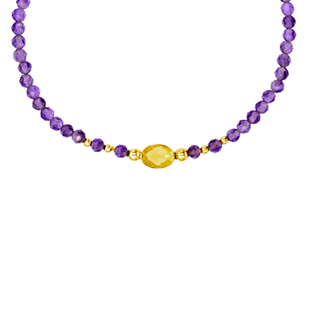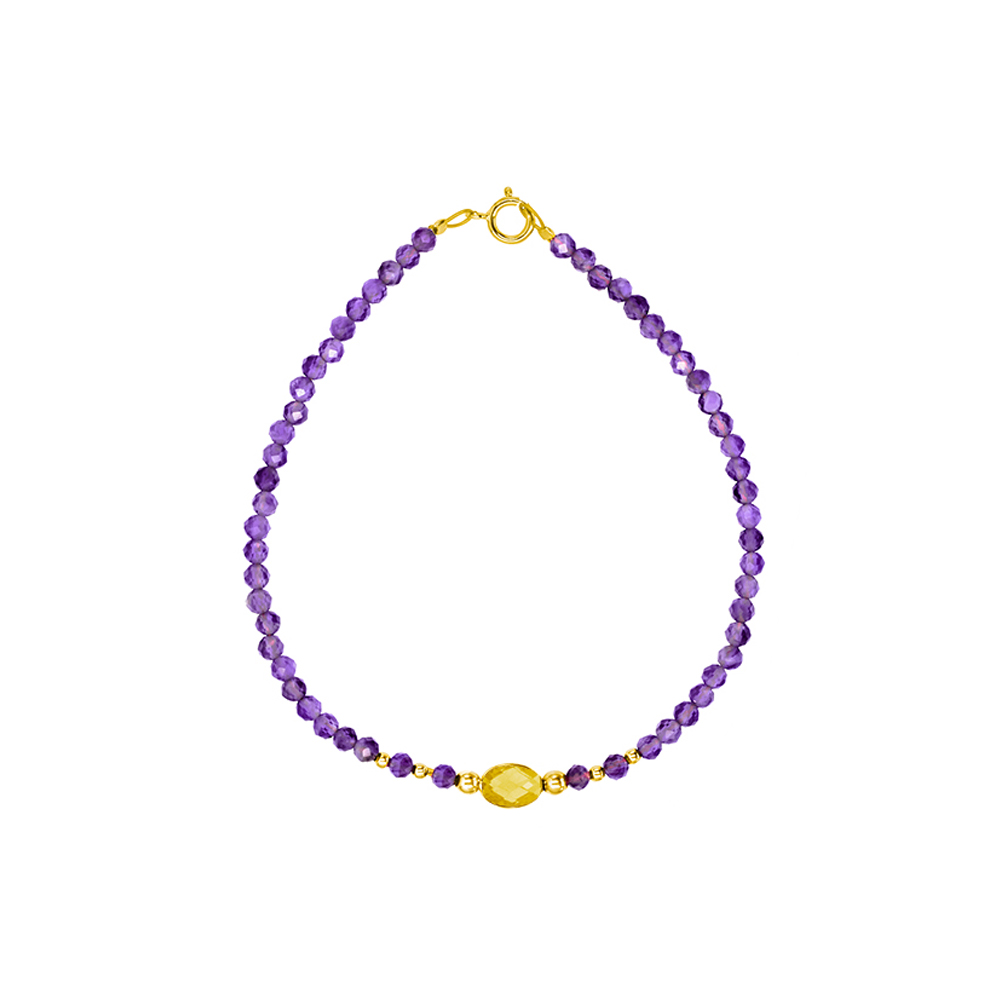 Βραχιόλι με Κ14 χρυσά στοιχεία, αμέθυστο και citrine - F124146VC
