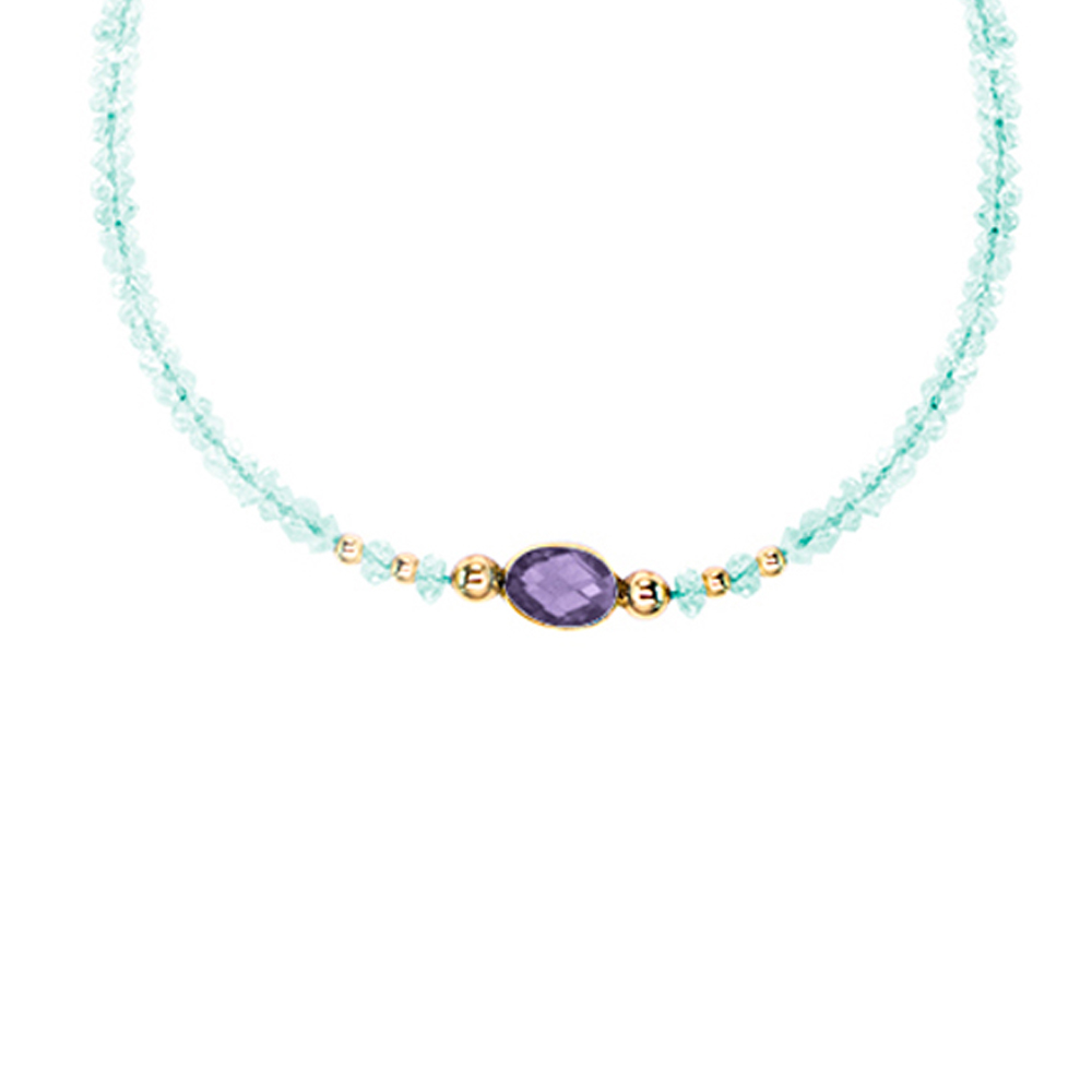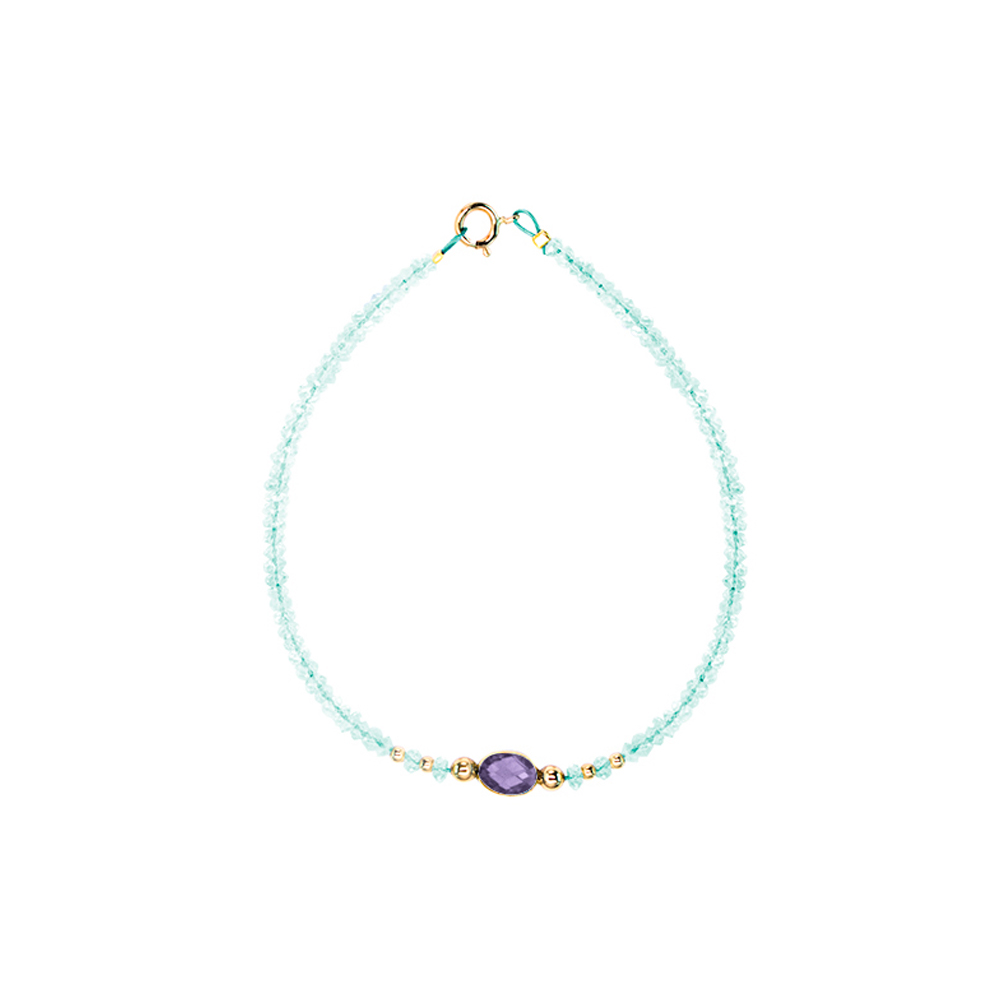 Βραχιόλι με Κ14 χρυσά στοιχεία, aqua και amethyst - F124143A