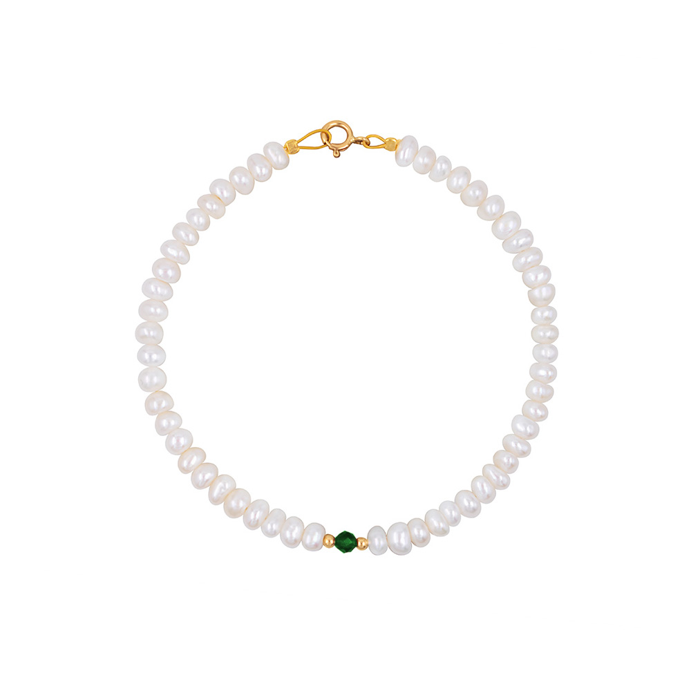 • Ένα υπέροχο βραχιόλι με λευκά μαργαριτάρια γλυκού νερού Fresh Water Pearl, άριστης ποιότητας, διαμέτρου 4,5-5 χιλιοστών.