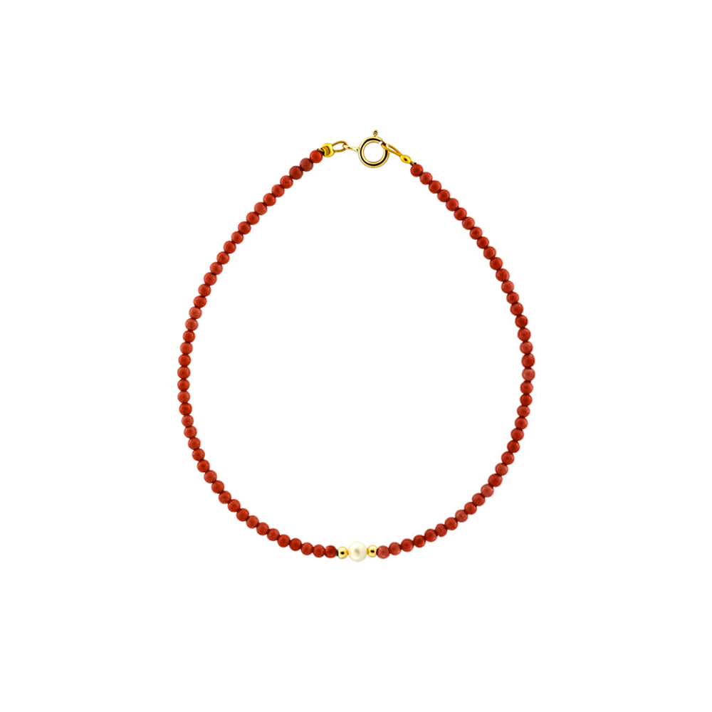 Βραχιόλι με Κ14 χρυσά στοιχεία, κοράλλι και μαργαριτάρι - F124410