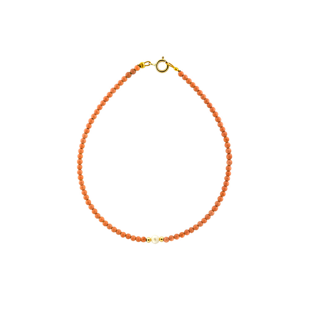 Βραχιόλι με Κ14 χρυσά στοιχεία, ανοιχτόχρωμα κοράλλια και μαργαριτάρι - F124410C