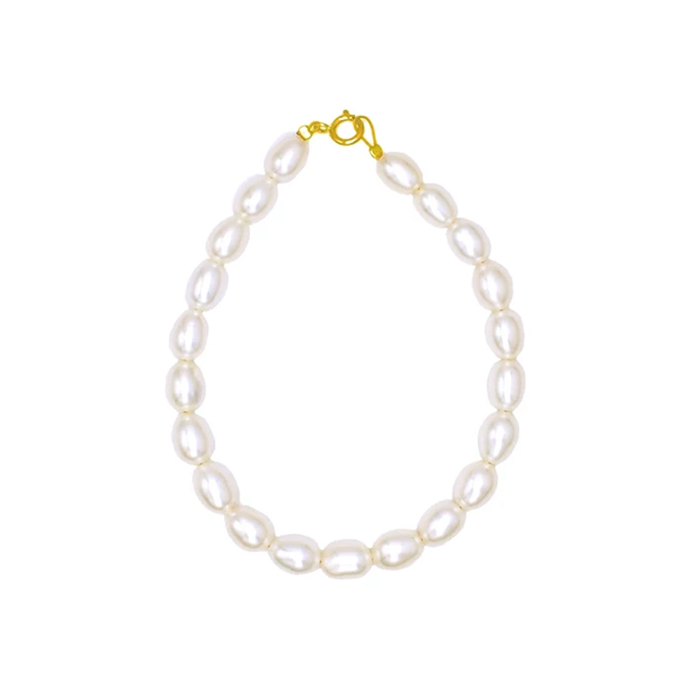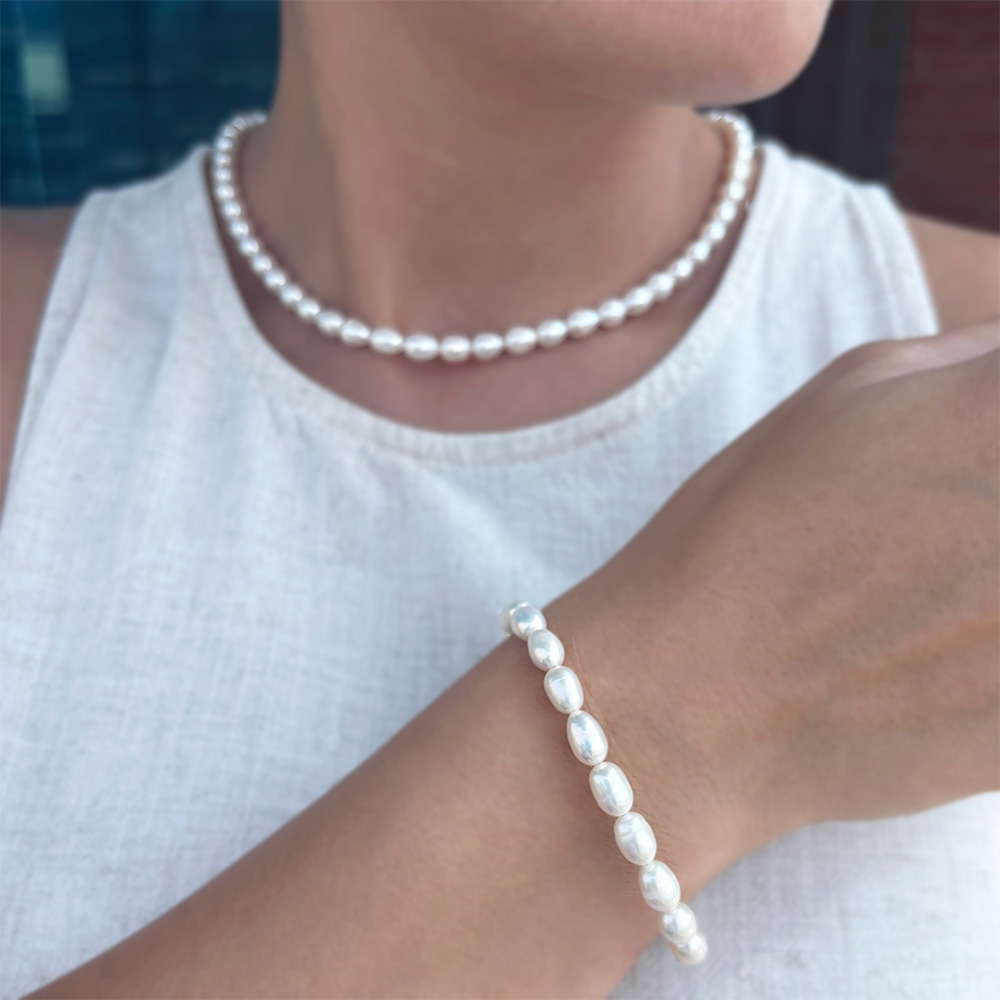 • Ένα υπέροχο βραχιόλι με λευκά μαργαριτάρια γλυκού νερού Fresh Water Pearl διαμέτρου 6 x 7 χιλιοστών σχήματος Long.