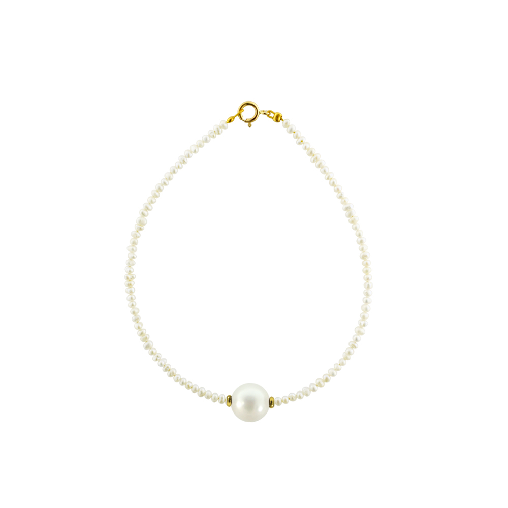 • Ένα υπέροχο βραχιόλι με λευκά μαργαριτάρια γλυκού νερού Fresh Water Pearl διαμέτρου 2 - 3 χιλιοστών.