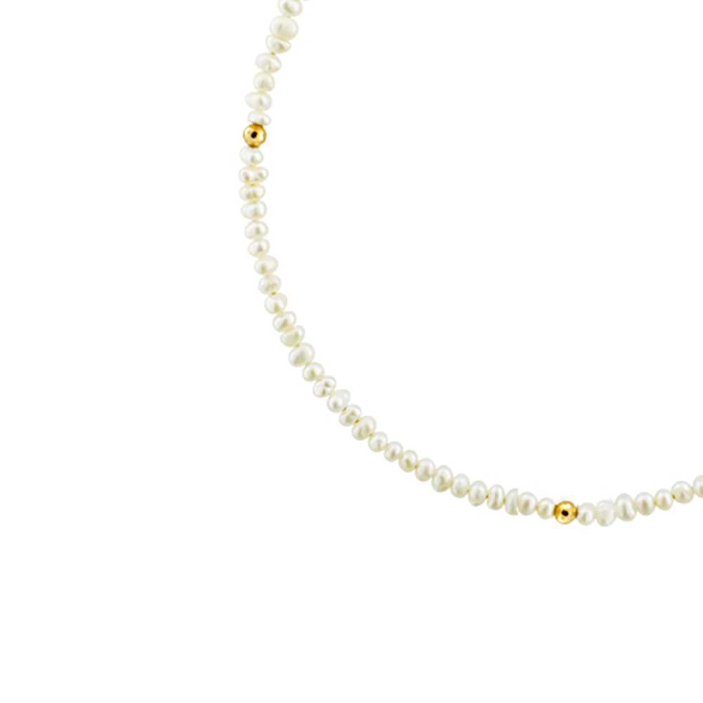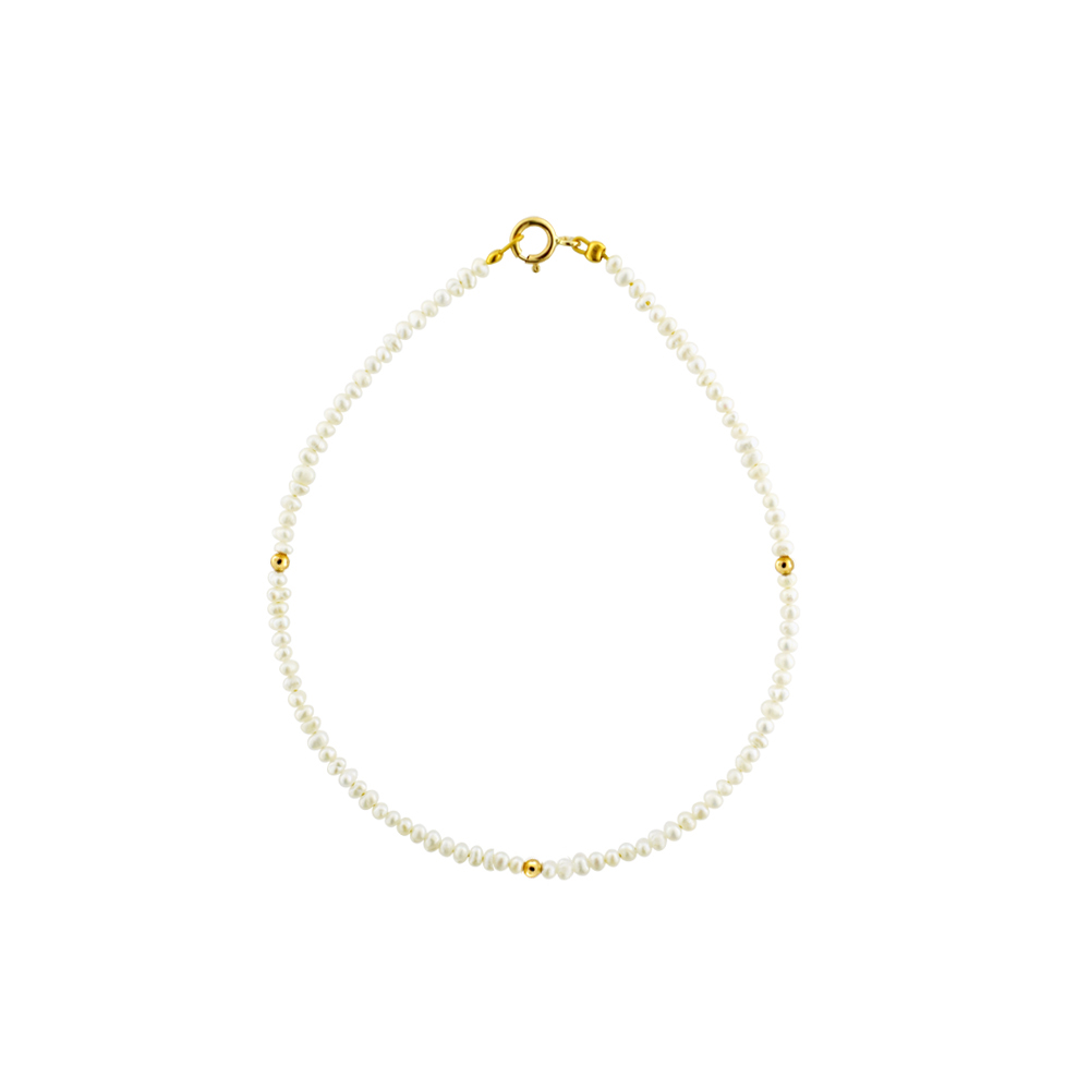 Βραχιόλι με Κ14 χρυσά στοιχεία και λευκά μαργαριτάρια - M123696