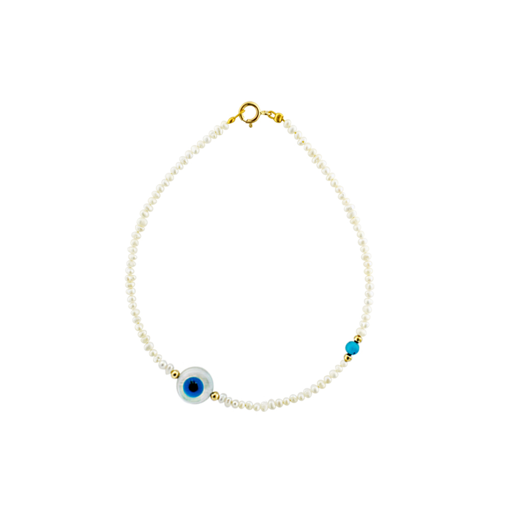 Βραχιόλι με χρυσά στοιχεία Κ14 μαργαριτάρια και τυρκουάζ - M122744R