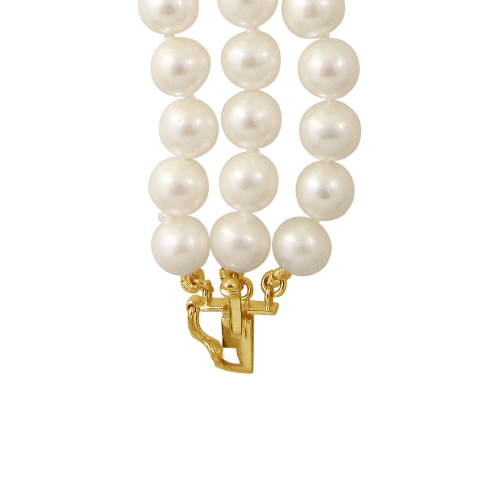 Είναι δεμένο με μεταξωτό νήμα που δημιουργεί κόμπους ενδιάμεσα στα μαργαριτάρια για λόγους προστασίας και ασφάλειας.