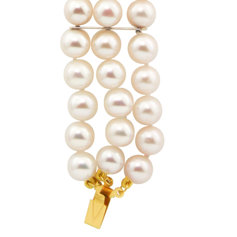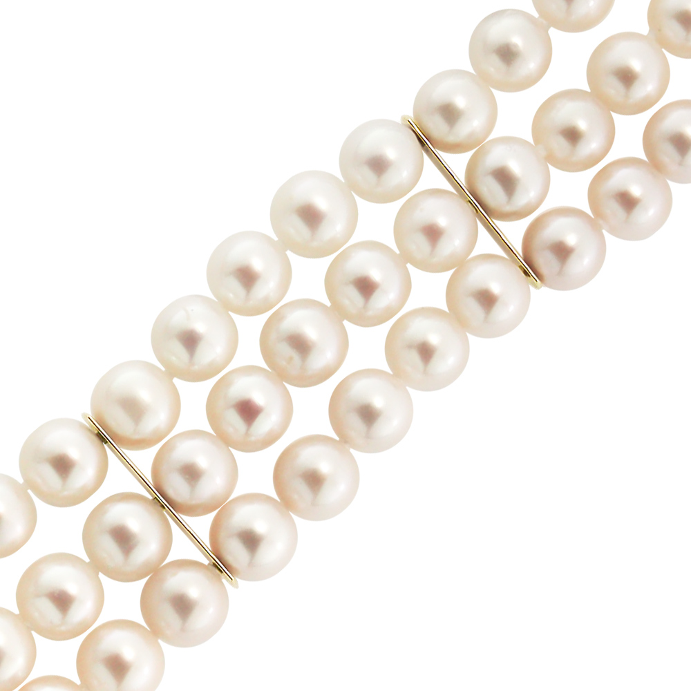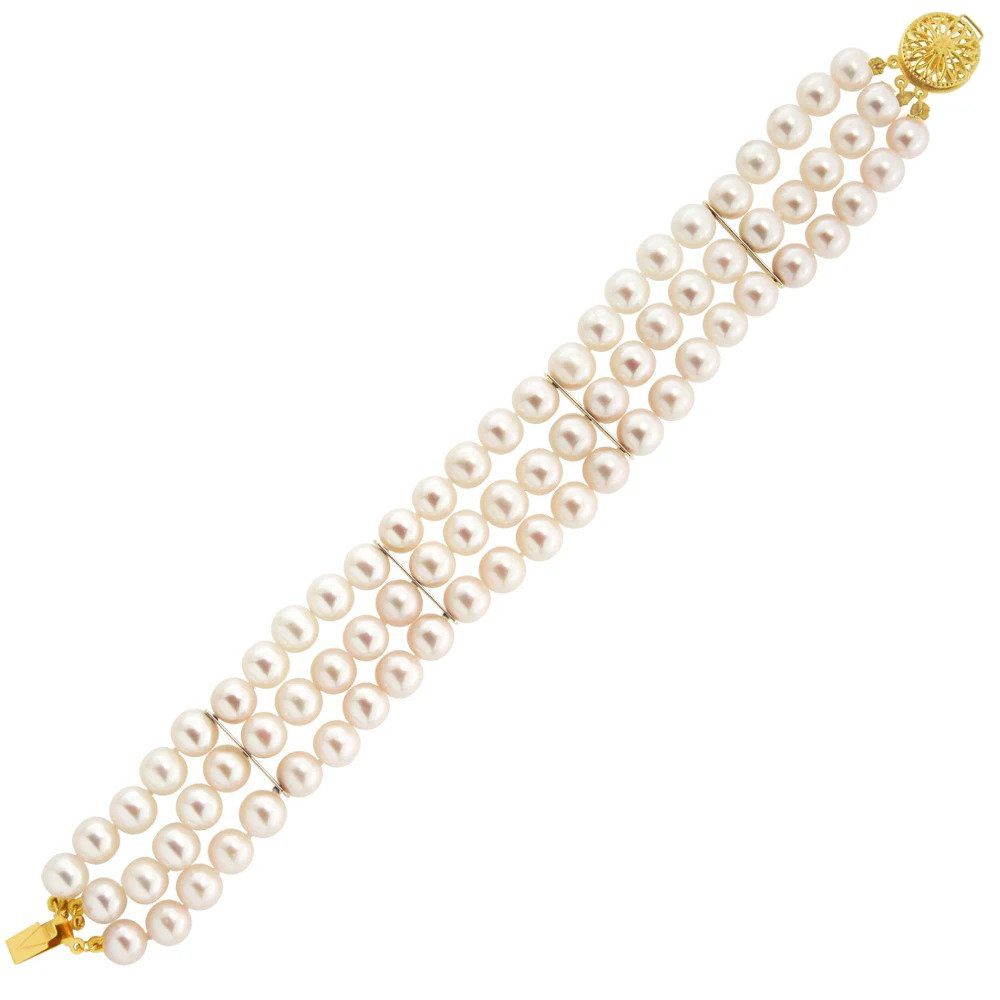 • Ένα εντυπωσιακό βραχιόλι από 3 σειρές λευκά μαργαριτάρια γλυκού νερού Fresh Water Pearl διαμέτρου 7 - 7,5 χιλιοστών, άριστης ποιότητας
