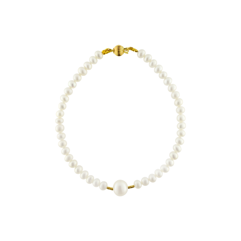 • Ένα φανταστικό βραχιόλι με λευκά μαργαριτάρια γλυκού νερού Fresh Water Pearl διαμέτρου 4 - 4,5 χιλιοστών.