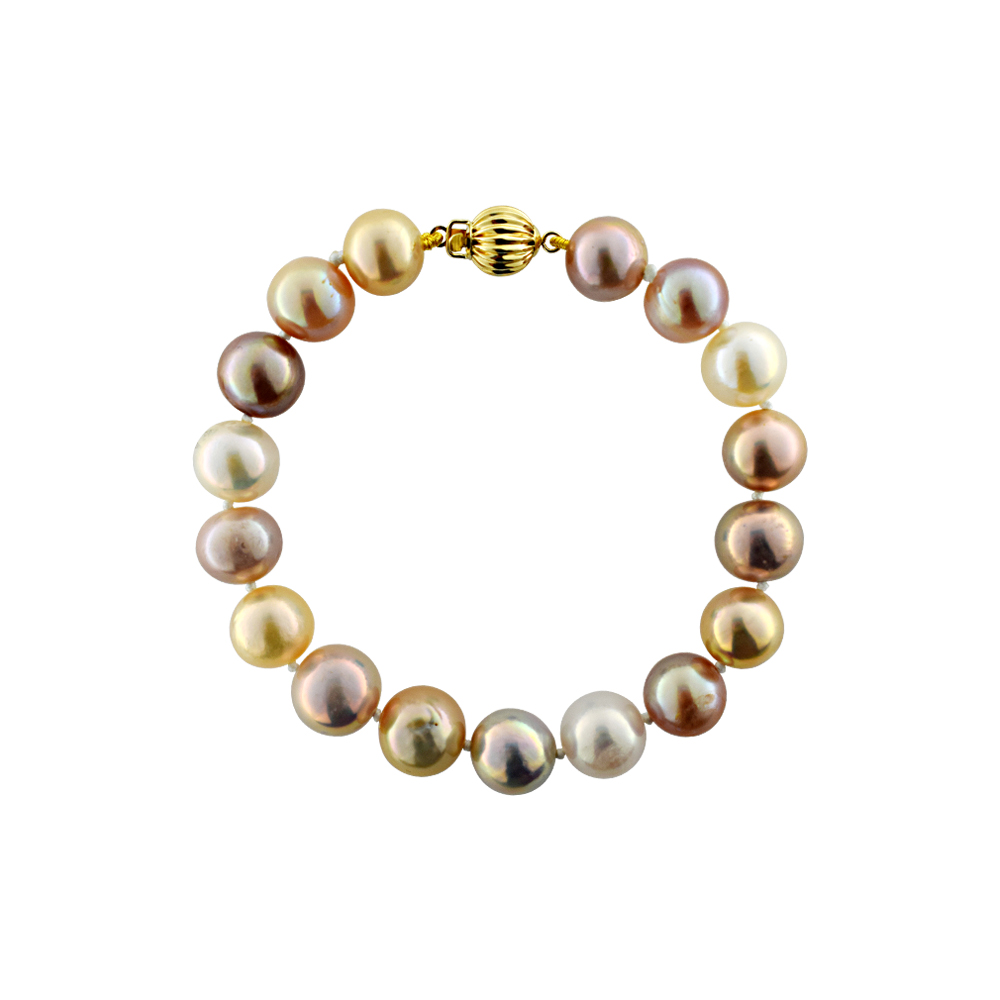 • Ένα φανταστικό βραχιόλι με πολύχρωμα μαργαριτάρια γλυκού νερού Fresh Water Pearl, άριστης ποιότητας διαμέτρου 10 - 11 χιλιοστών, σε σχήμα Round (στρόγγυλο).